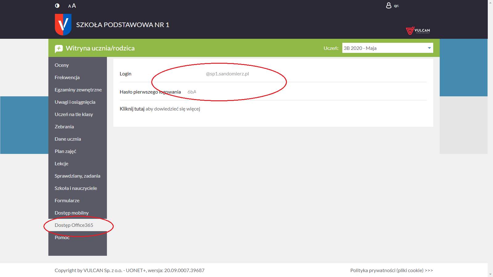 Aby zacząć przygodę należy zalogować się na office.com wykorzystując login i hasło startowe dostępne na stronie eDzienniczka szkoły.